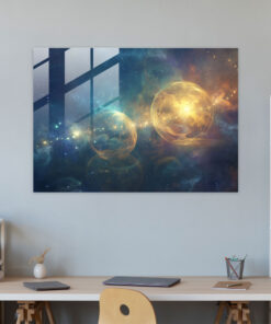 When metaphysical painting meets the transparency and luminosity of glass art, the result is truly mesmerizing. Our Metaphysical Glass Art prints are created using state-of-the-art UV printing technology, ensuring exceptional clarity and color vibrancy. The glass medium adds a unique depth and dimension to the artwork, allowing light to play across its surface and enhancing the overall visual impact.